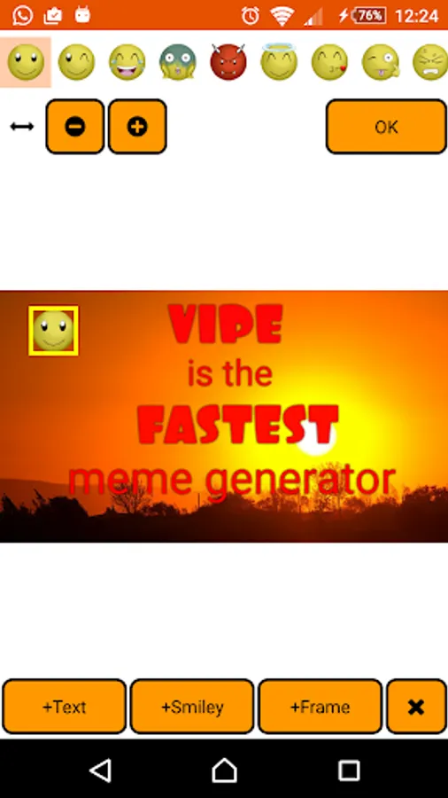 - Share your created memes with friends through any social network available at your smartphone.