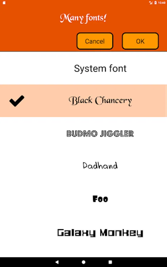 - Many text fonts available.