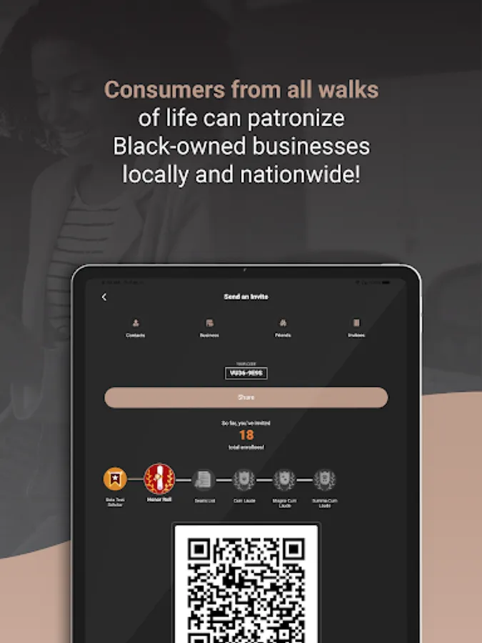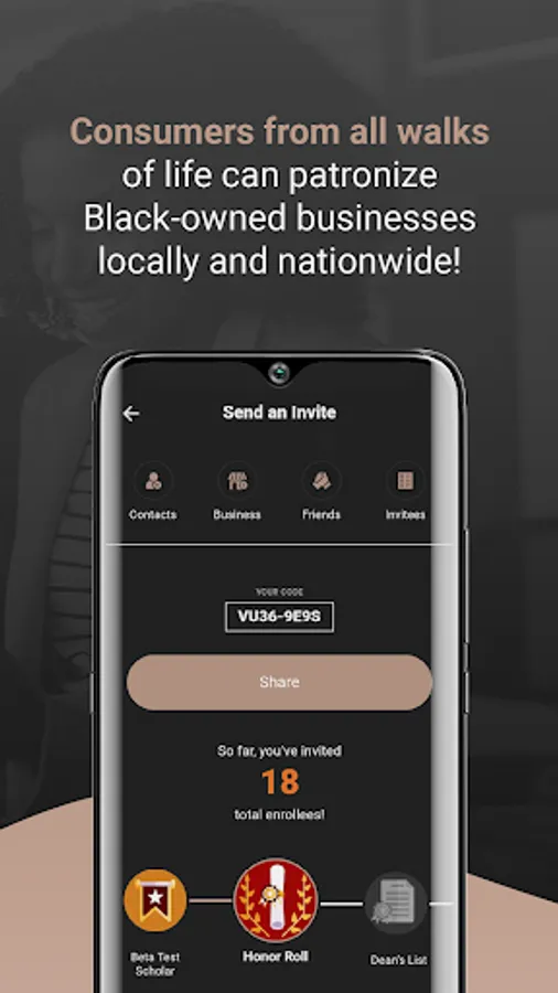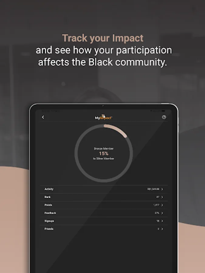 - Track your spending, invites, feedback and its impact on the Black community