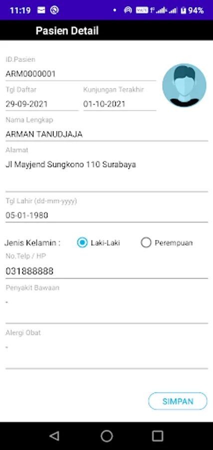 Is a simple application to help doctors, or small clinics in managing patient data, medical history / medical records as well as printing invoices for patients seeking treatment, using a bluetooth printer or sharing in the form of pdf files.