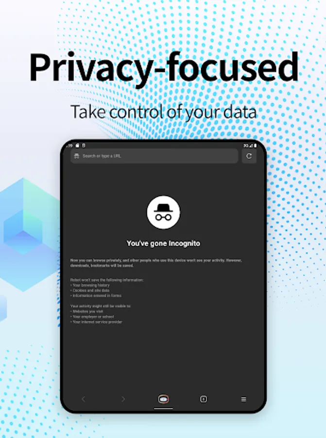 Whether you're delving into extensive research, shopping online, or just exploring the vast web, Robot offers a fast, secure, and privacy-centered browsing experience.