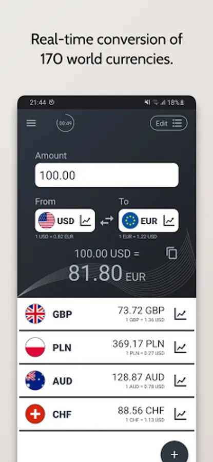 Convert 170+ currencies in real-time with Currency Converter. With rates sourced from 15 trusted financial providers, including the ECB, this app is your ultimate currency exchange solution. Features include multiple currency fields, historical rate charts, and a built-in calculator. Get instant conversions for popular currencies such as USD, EUR, GBP, and more. Access live gold and silver prices, and even exchange virtual currency. Download the app for free and experience seamless currency conversion on the go.