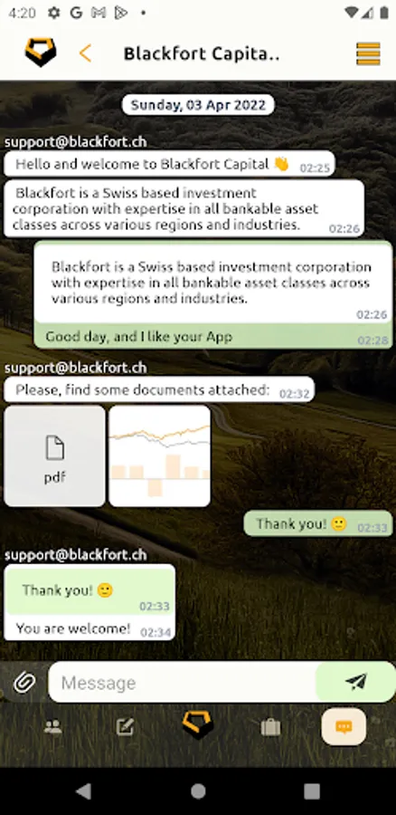 Direct chat functionality, enabling secure and efficient communication with our team. You can ask questions regarding your portfolio bundle and receive prompt responses within a dedicated and confidential channel.