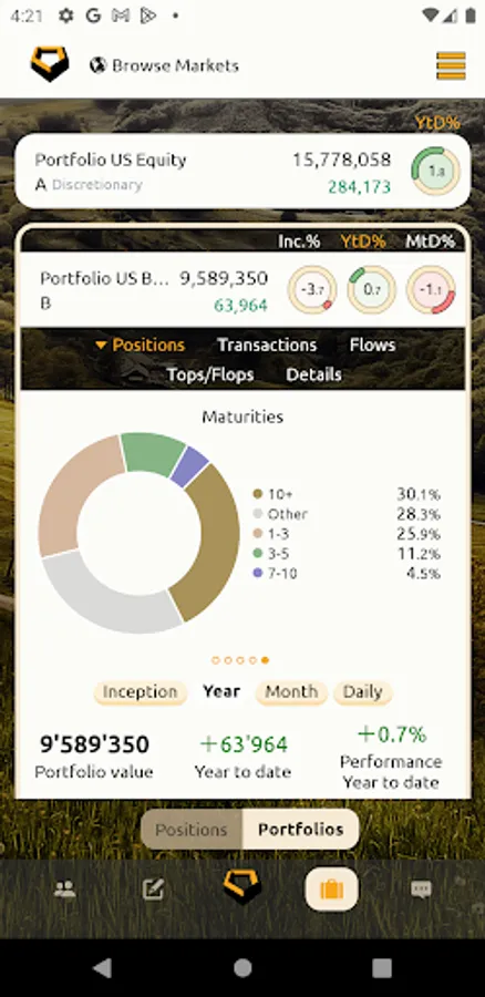 "Positions": Offering a ranked list of individual investments within your current portfolio radar, this feature allows for quick and easy evaluation of investment performance.