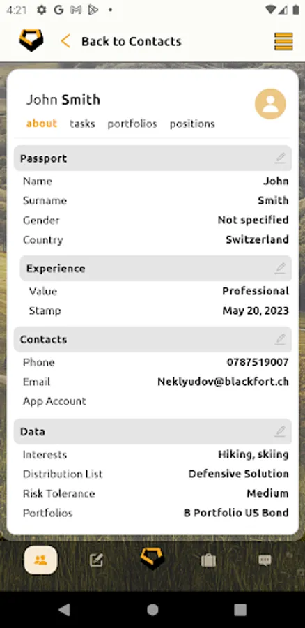 Rest assured that our App upholds the highest standards of data security. All information exchanged between your device and our servers is transmitted through secure and encrypted channels (https and wss). Additionally, your access credentials are securely stored and encrypted on your phone. We strictly adhere to industry-grade security practices and are fully regulated as an asset management company in Switzerland.