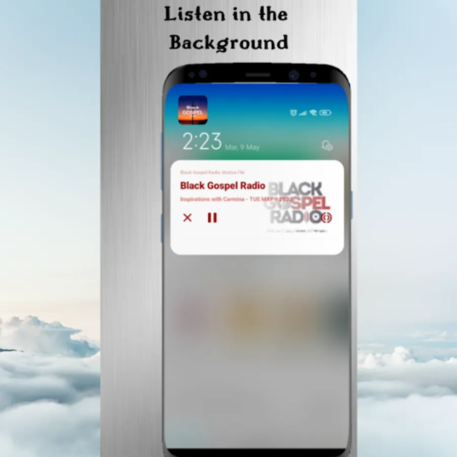 Black Gospel Radio Station FM can be heard in the background while you enjoy other applications on your cell phone