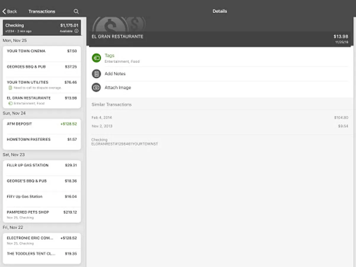 Keep your transactions organized by allowing you to add tags, notes and photos of receipts and checks.