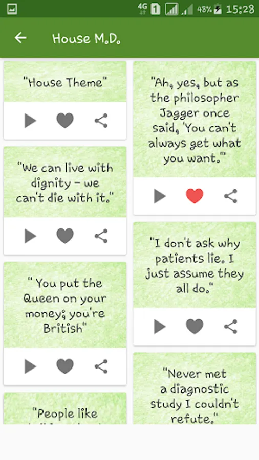 If you want you can also relive your favourite moments from your favourite TV series by playing the Quotes.