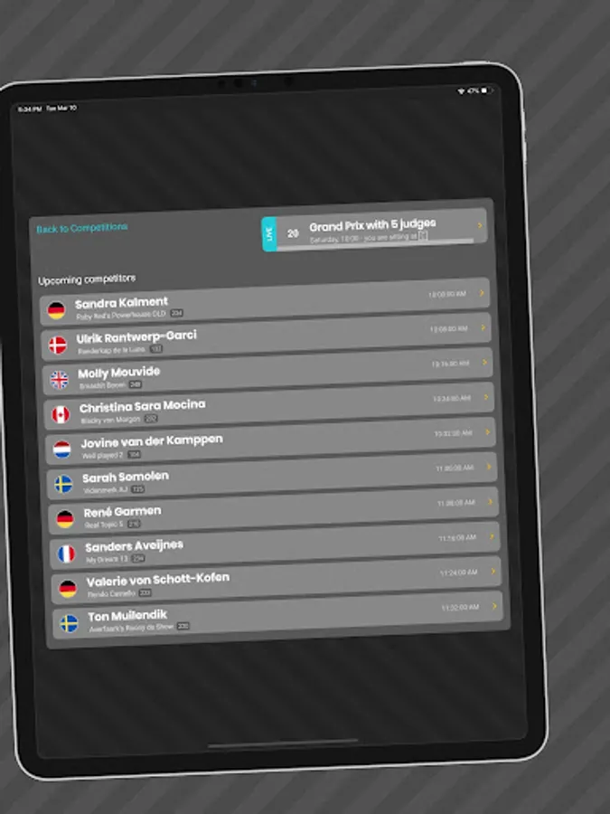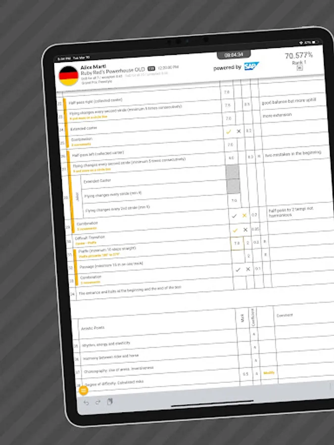 The judges can sign the test-sheet either with a finger or Apple Pencil and the full, final result is available to the spectators, commentators and rider, within seconds of the final salute.