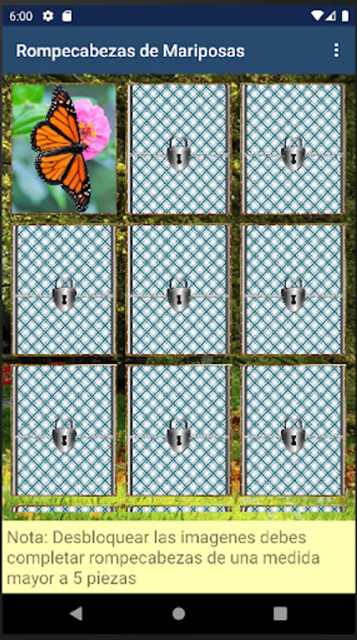 It has a lot of variety of images and to unlock each image you must choose the puzzles larger than 6x6 and when you complete it you will unlock the next image.
