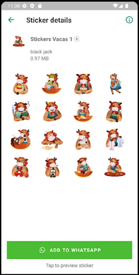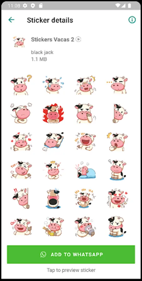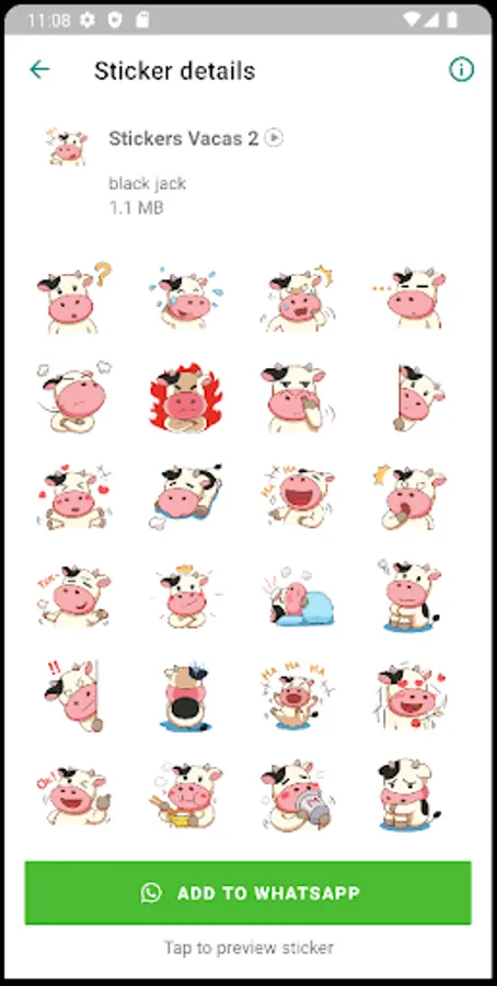 Add a touch of fun and cuteness to your WhatsApp conversations with our lovely pack of cow stickers! Express your unique style and show your love for these majestic animals with our vast collection of cow stickers. From smiling cows to adorable calves, our selection of high-quality stickers capture the beauty and personality of cows in different situations. Add a touch of humor to your chats and share funny moments with your friends and family. Download our cow stickers application and enjoy a unique experience by sharing these stickers in your WhatsApp conversations. Let the cows be the protagonists of your chats and take the fun to another level!