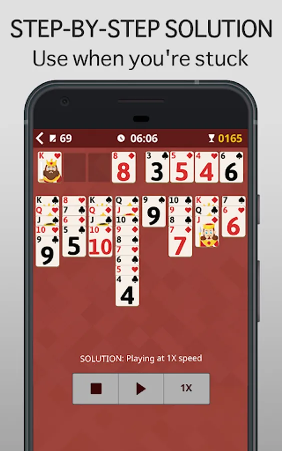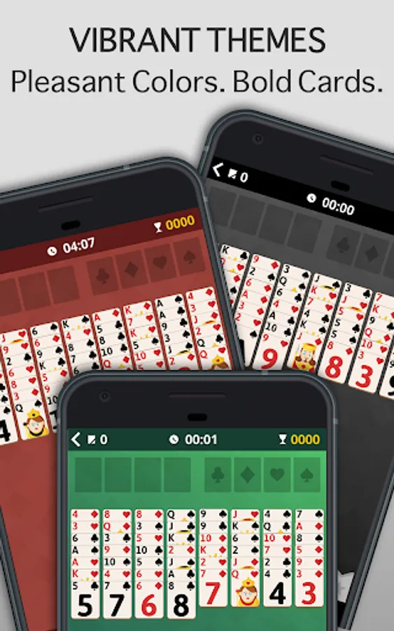 FreeCell Solitaire by BlackLight is true to the classic experience. The game is optimised for mobile with big and bold eye-friendly cards. FreeCell is available in multiple languages. The game offers an option to “Bookmark” a deal, which you can either play later or share with friends. “View Solution” feature gives you step-by-step solution of the deal.