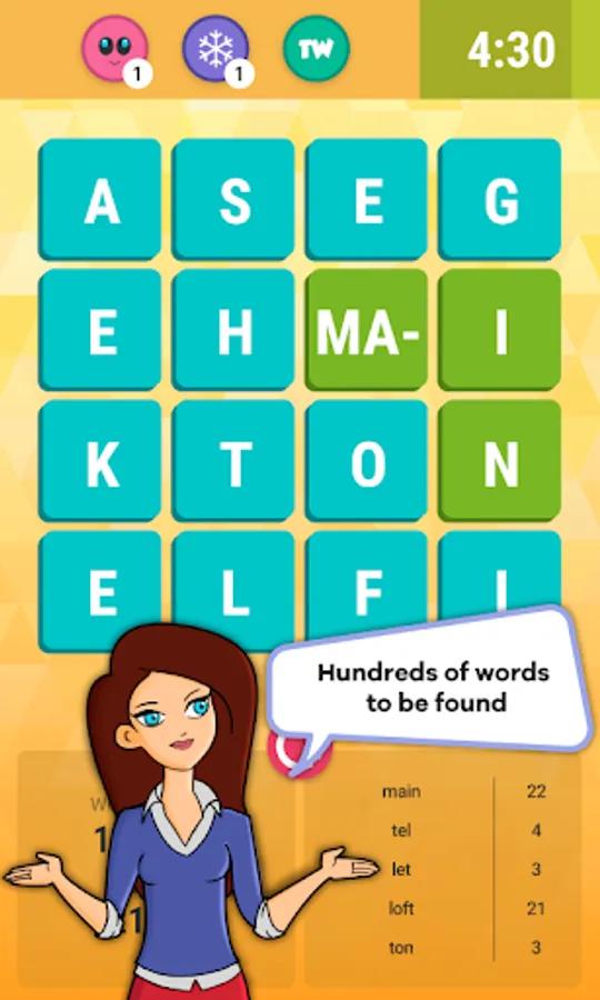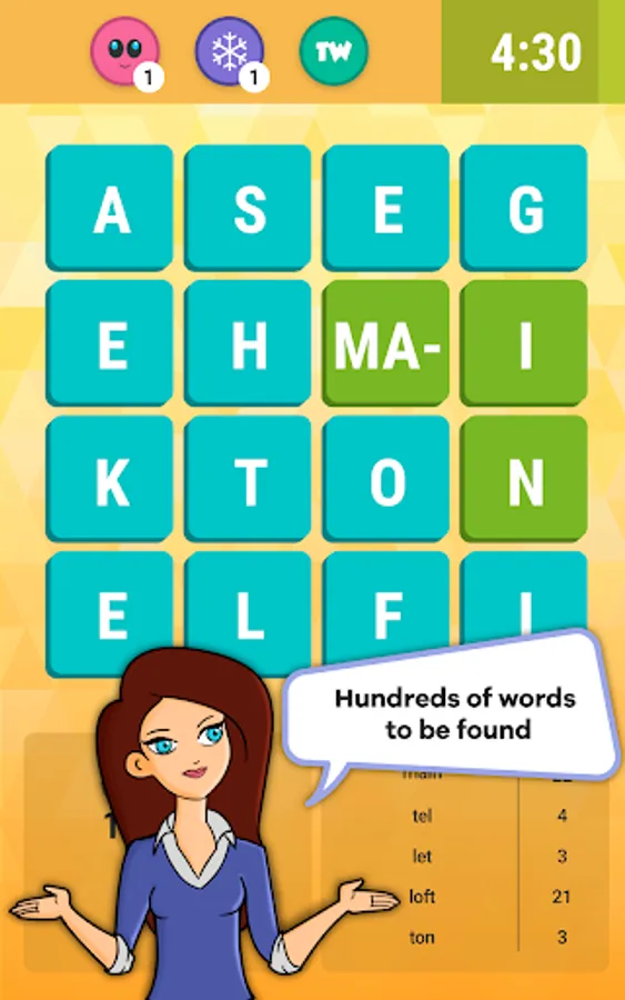 This Word search is simple yet sharp. Find the maximum number of words by connecting cubes on the grid. The more the words, the higher you climb on the Word search leaderboard. Fire your finger around horizontally, vertically, diagonally or fly zig-zag. Remember, you have 5 minutes.