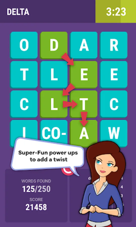 The game of Word search is a modern avatar of Hasbro's classic BOGGLE® word game, a puzzle of hidden words. Search more words to move up the Word search.