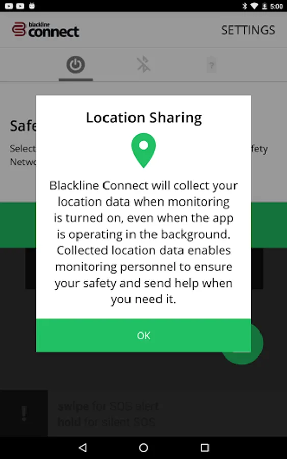 Blackline Connect runs in the background and connects to the Blackline Safety Cloud, reporting safety status and location information. Should an emergency occur, Blackline Connect triggers an alert to a live monitoring team to direct help to the employee’s location. Live monitoring options include supervisors, a control room, central monitoring station or Blackline’s 24/7 in-house Safety Operations Center / Alarm Receiving Center partner.