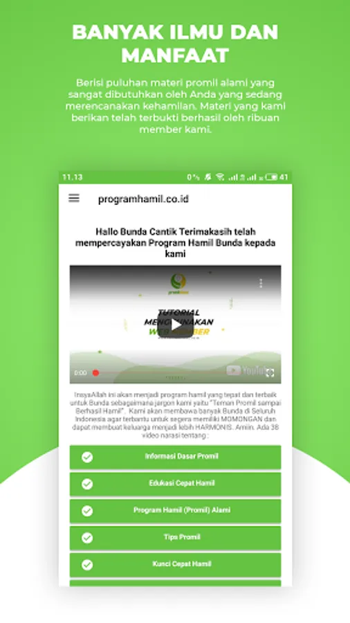 Application for Promil Alami members who have purchased the digital package programhamil.co.id. For member registration, you can contact our Admin via WhatsApp at number +6281226017166