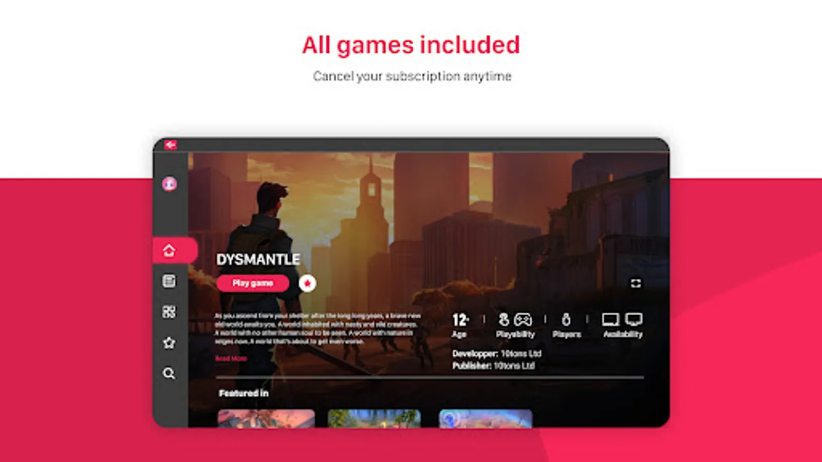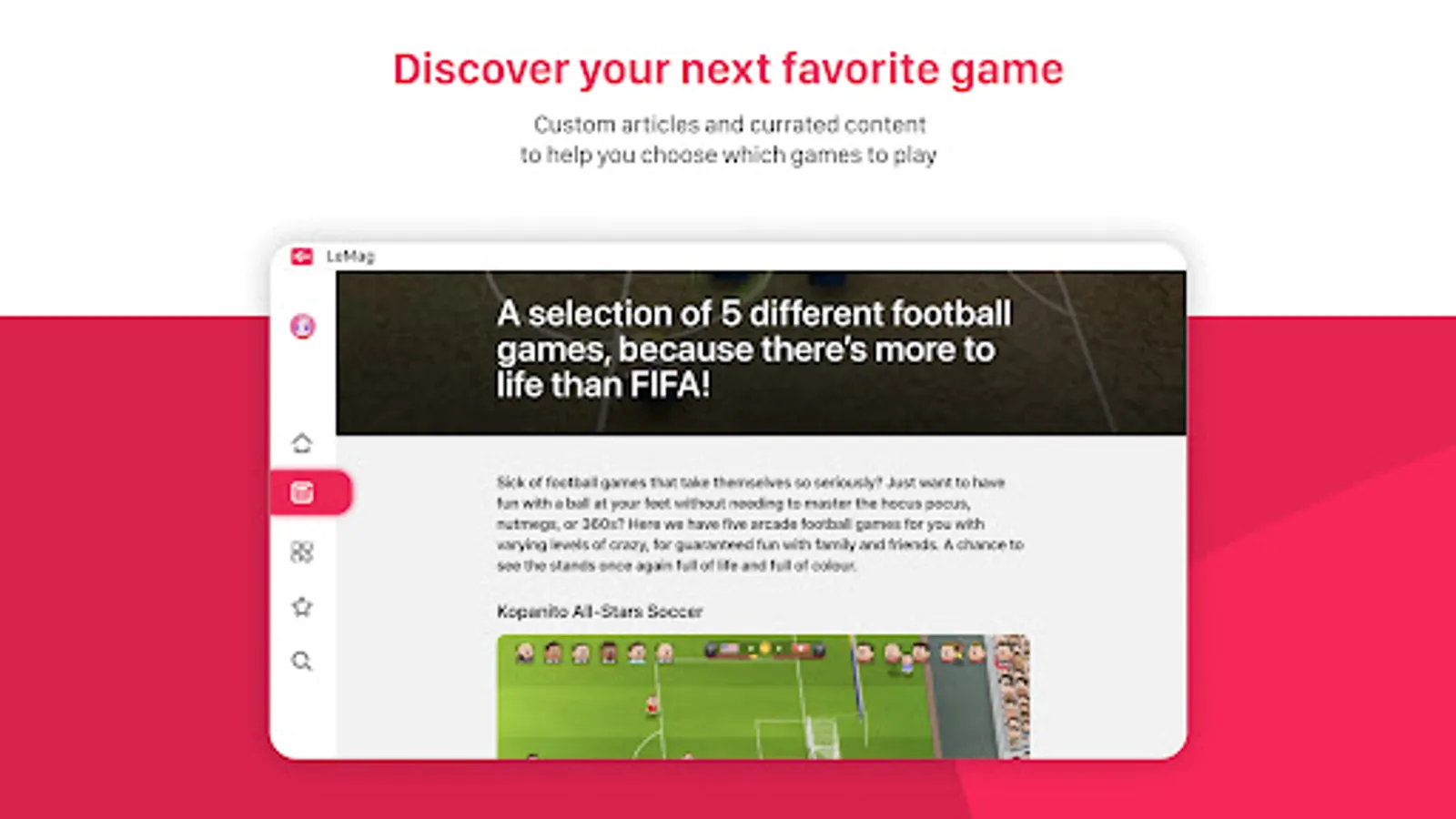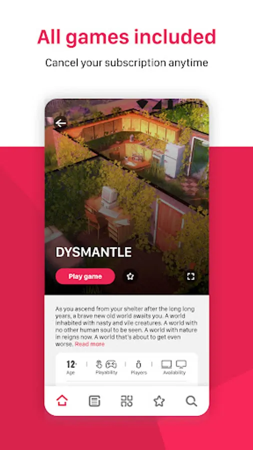 Play games directly from within our app. You just need to select the title of your choice and play with the Blacknut streaming technology. (No download or update is required)!