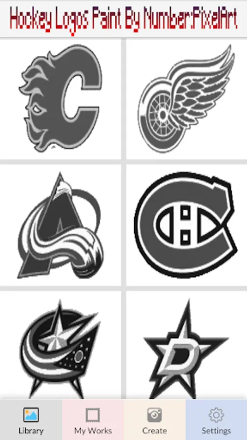 feature of Ice Hockey Logo Paint by Number:Pixel Art Coloring 2 :abilite to chose the logo you want color