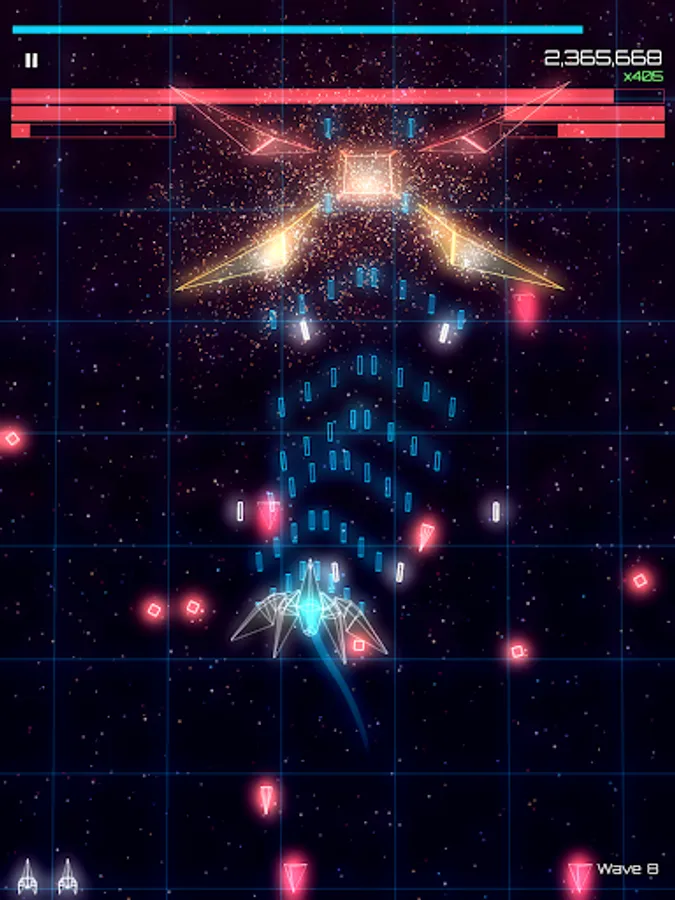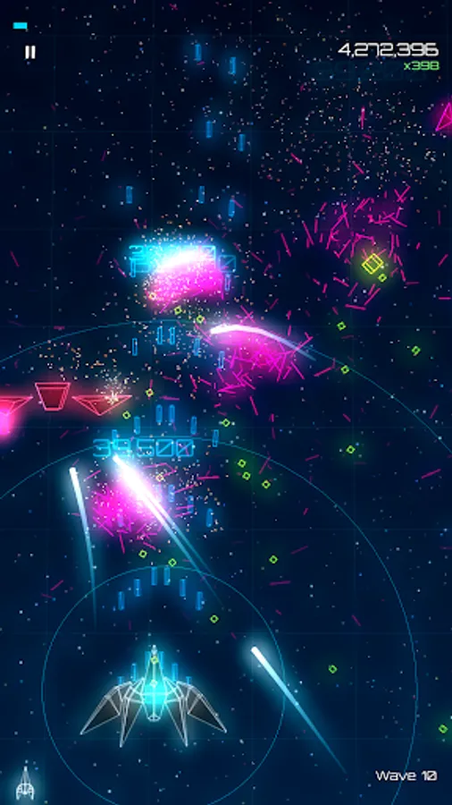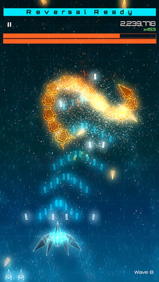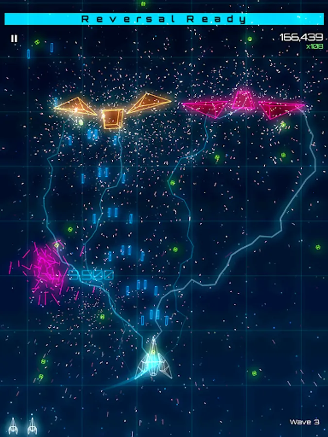 You have a special REVERSAL ability that charges every 20 seconds. Once charged you tap with a second finger onto the screen (or double tap) and all enemy bullets flip around into seeking missiles helping you escape impossible odds and get epic clears.