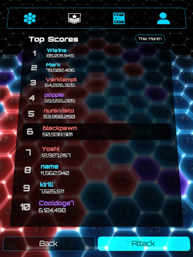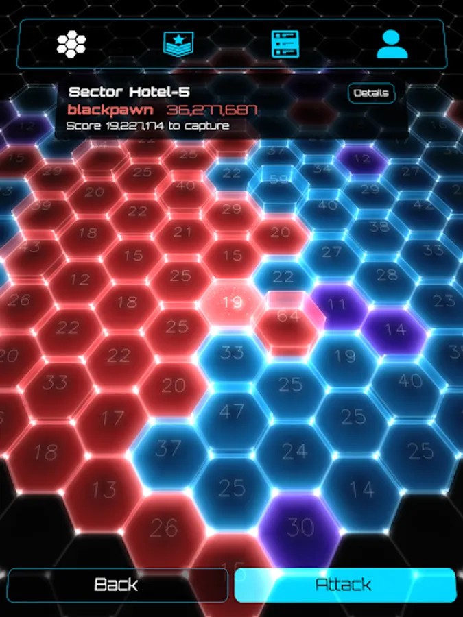 A multiplayer Conquest mode arrives with the 0.2 update and lets you compete against other players in three factions (red, blue, and purple) to capture and control hexagonal sectors on a global map. Achieve the high score on a sector to capture it for your faction and work together to take control of the map. Scores decay over time and sectors can be replayed to defend them and capturing surrounding sectors helps protect them. It’s an all new innovative two multidimensional leaderboard system!