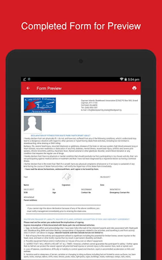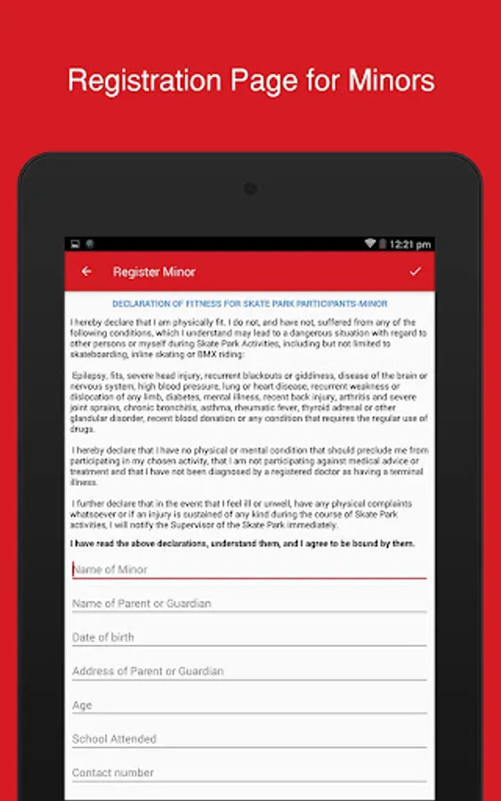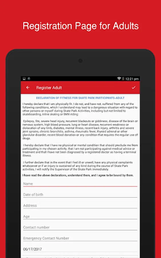 Skateboard Android application allows the users to register themselves as adults or minors. Getting registered with this application makes you a member of Black Pearl Skate Park, which is the largest outdoor concrete park in the Cayman Islands.