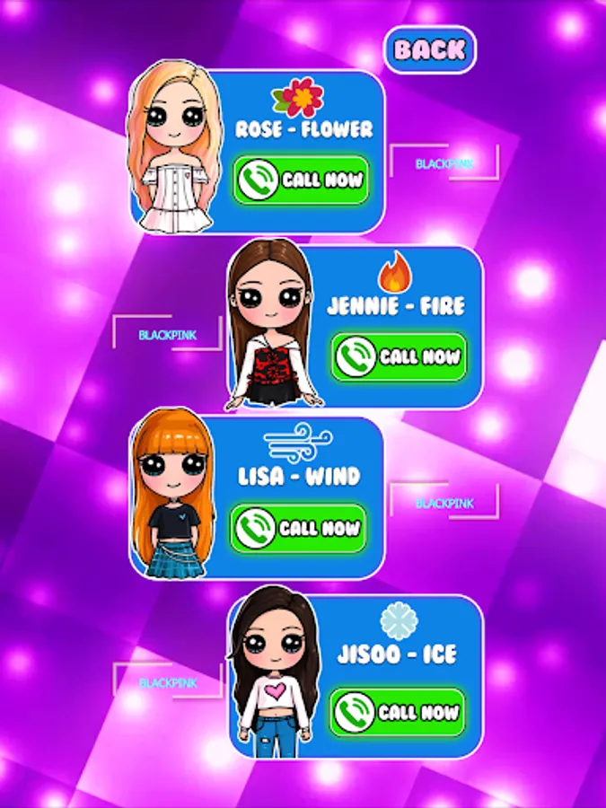 This BlackPink prank and that will help you personalize call from BlackPink and pretend talking on the phone and make your freinds wondering . By playing this app from you will have variety of times The app is an unofficial version, not related to the game creator.