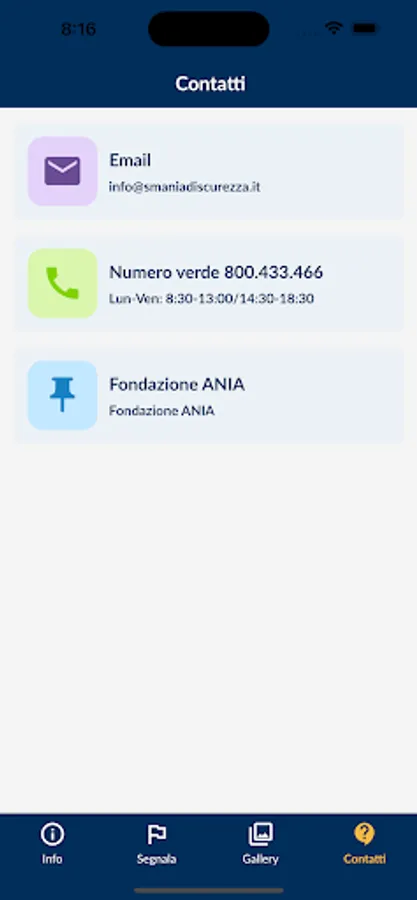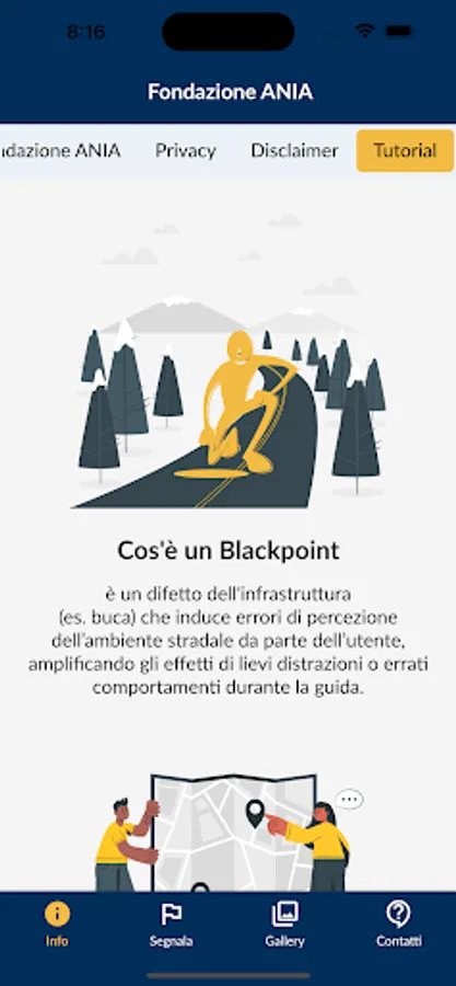 The Blackpoint app is developed by the ANIA Foundation was born in 2004 by the will of the insurance companies, acting for over 12 years to reduce the number and severity of accidents on Italian roads. It did so by dialoguing with the public sector by signing memoranda of understanding with central and peripheral administrations, but also by creating, designing and financing training and information activities that significantly contributed to the diffusion of a new culture compliance with the rules of the road.