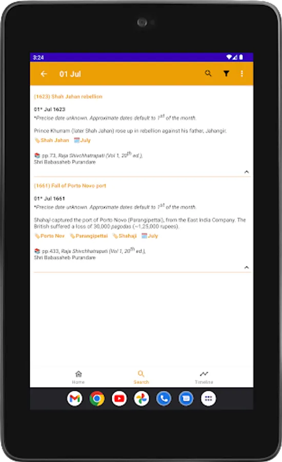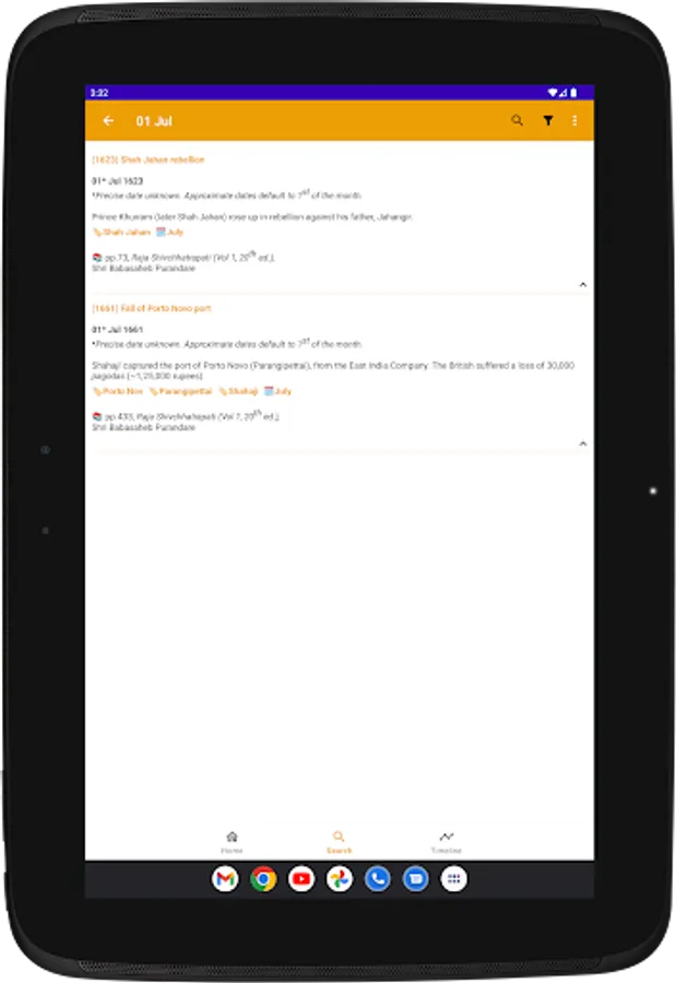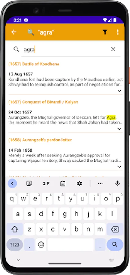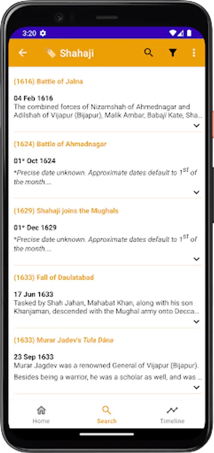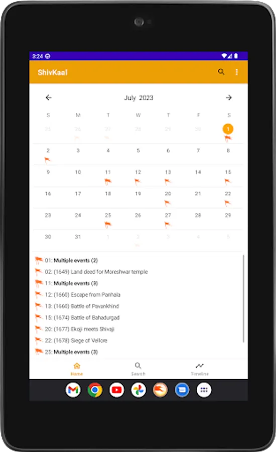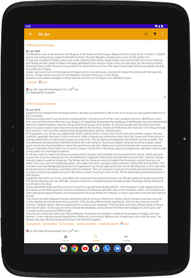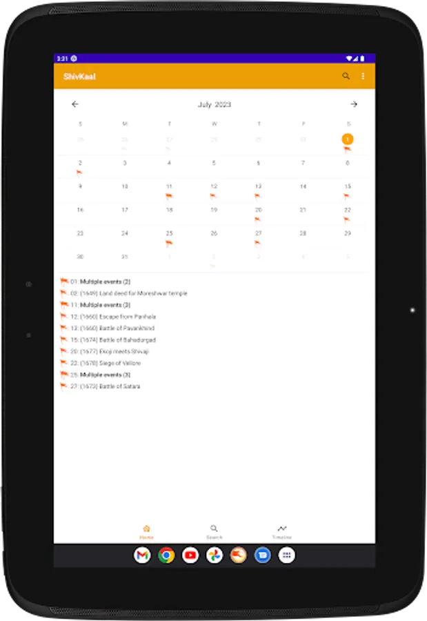 This interactive app tabulates all the events before and after Shivaji Maharaj's birth, his trials and tribulations which he overcame to establish the Maratha kingdom, which eventually blossomed into an Empire.