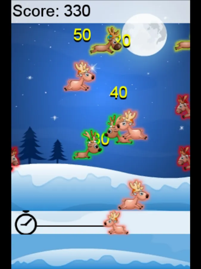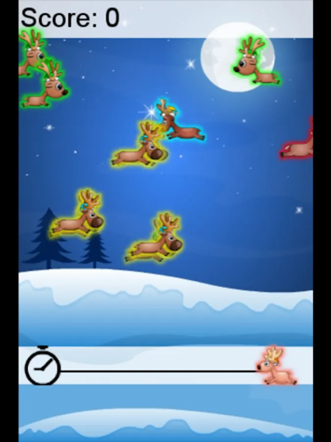 Match two or more reindeers of the same color and increase your score in this Christmas game. The more you match together, the better, so try to match 3 or more. Simple Casual game for all ages and with a cute Christmas theme!