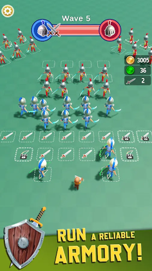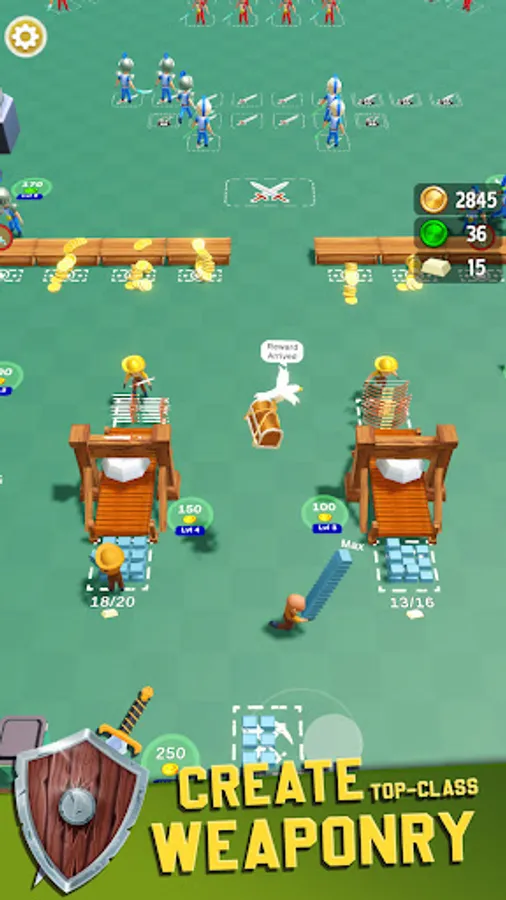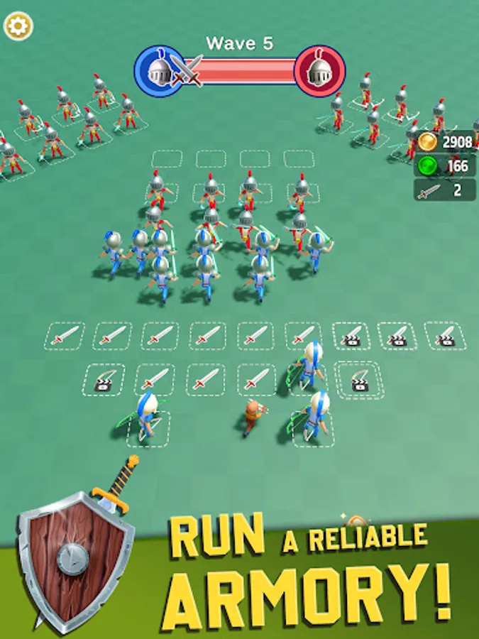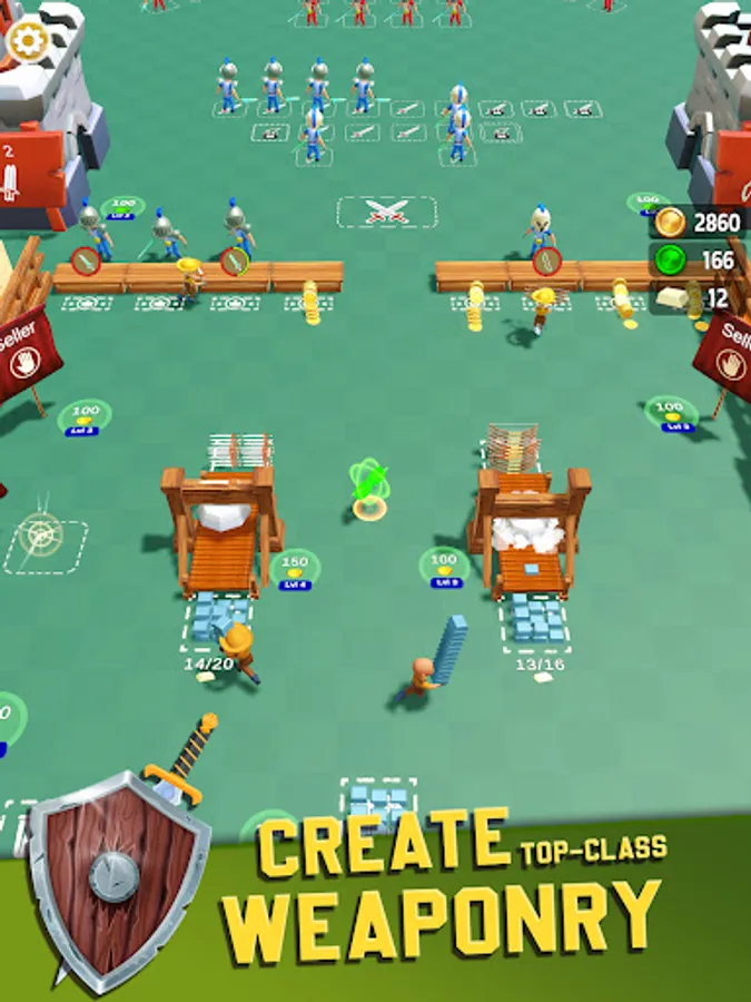 You just need to collect resources, carry them to weapon making machines and deliver those fine crafts to your soldiers.