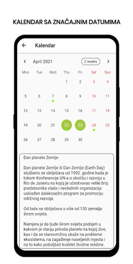 Pored nagradne igre u ovoj aplikaciji imate korisne informacije i animacije o zaštiti životne sredine, kalendar sa značajnim datumima i mapu zelenih ostrva grada Gradiška.