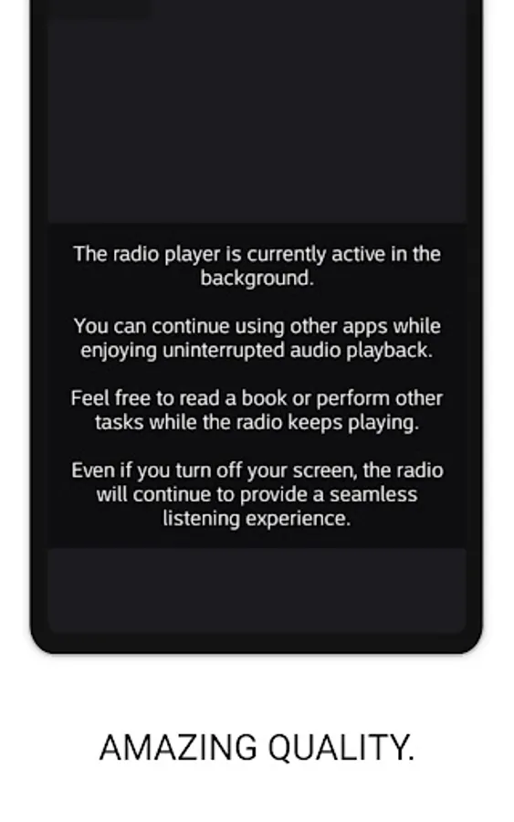 Background Playback: Continue listening to your favorite stations while using other apps or when the app is minimized.