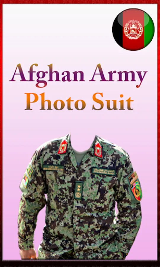 Afghan army suit changer will be the latest photo editor application for Afghanistan army uniform photo suit. You can see yourself in Afghan army suit whether is within air force or ground army soldier. Apply your favorite army suit change face to your picture. Select photo from gallery or even take a new photo along with the camera. Simple response army man or an may be a Policeman.Afghan Army Suit Editor We should tribute to the military man as they remain far away from home plus stand whole night and day with nation border to protect us. Afghan army uniform suit app is really an up-to-date photo editing program which supports you to meet your own longings to see yourself within an Afghan army photo suit. A while you may be thinking to buy a various consistent to see how to try that will like to say the cop, a pilot or even state Military dress you just have download Afghan army uniform editor free application instead of shelling up money on the expensive army suits.