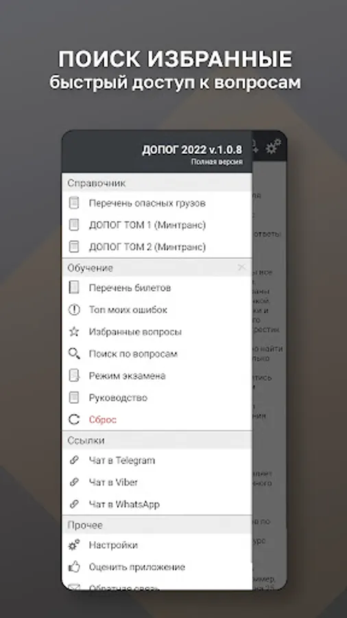 Current ADR exam papers with answers and explanations, new ADR 2023 volumes, an exam simulator, a large library of rules and reference books and dozens of other convenient functions for effective self-preparation for the ADR test (ADR) for obtaining a certificate for the transport of dangerous goods by road and subsequent work .