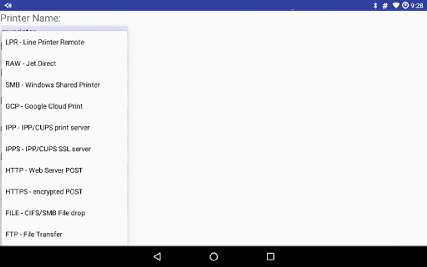 - implements the Android Print Framework Service; use the Print option on Gmail, Chrome, Gallery, etc.