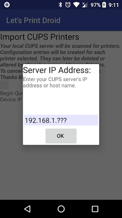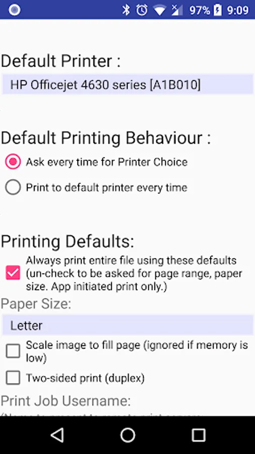 - Download the companion app "Let's Print PDF" to render PDFs on your android device or choose off-device rendering if you have a CUPS server. See the Help Files.