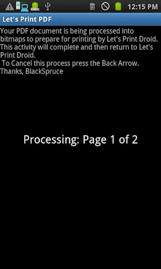 Let's Print PDF is a minor variation of the MuPDF Android Project. This app is distributed under the GNU GPL version 3 license. The source for this app can be found at http://code.google.com/p/lets-print-pdf