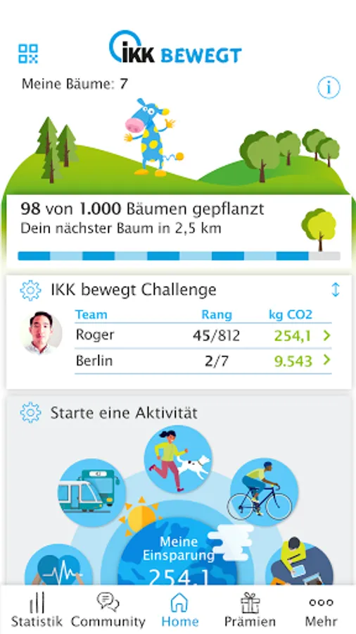 In addition, trees will be planted for the kilometers / IKK Taler you have collected. For every 100 kilometers traveled or 200 IKK thalers, the IKK classic plants a tree in an ecological reforestation project in Germany. In this way, you also contribute to a better CO2 balance.