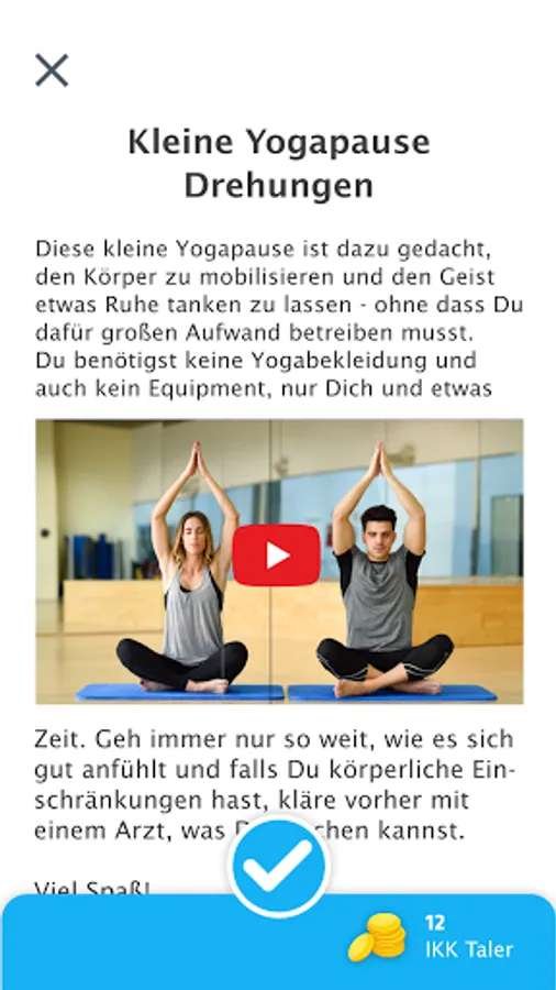 The IKK moves app supports you with a wide range of health offers to make your everyday life healthier and more sustainable. In the categories of exercise, nutrition, stress management, healthy togetherness and safe working life, there are many ways to actively shape your own health. Regardless of whether you work out with a workout, forget everyday life for a moment with lightning relaxation or cook a healthy and delicious recipe with friends and family - the IKK moves app has something for every taste. And best of all: all implemented activities are rewarded with bonus points.