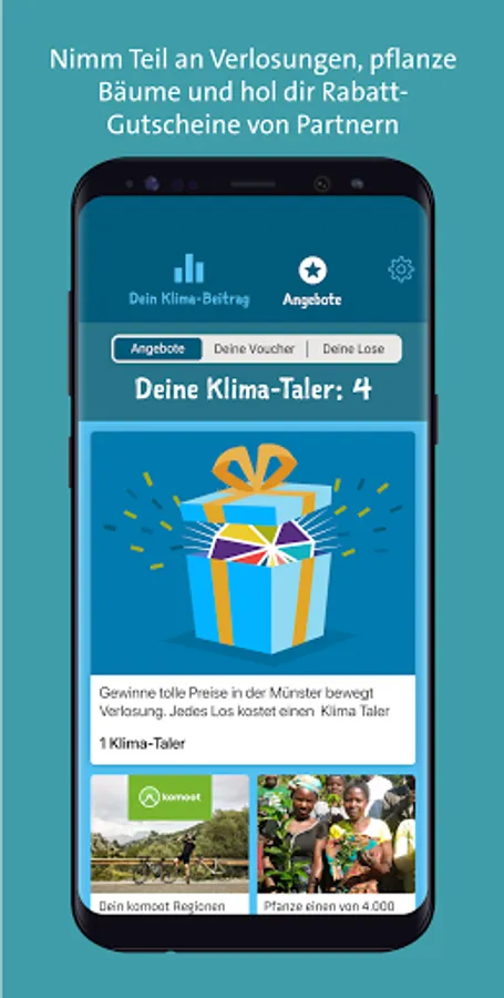 You can exchange your climate coins in the marketplace for vouchers, raffles and tree planting. Here you can discover new things and be motivated to live a more sustainable lifestyle with more exercise and more climate-friendly consumption.