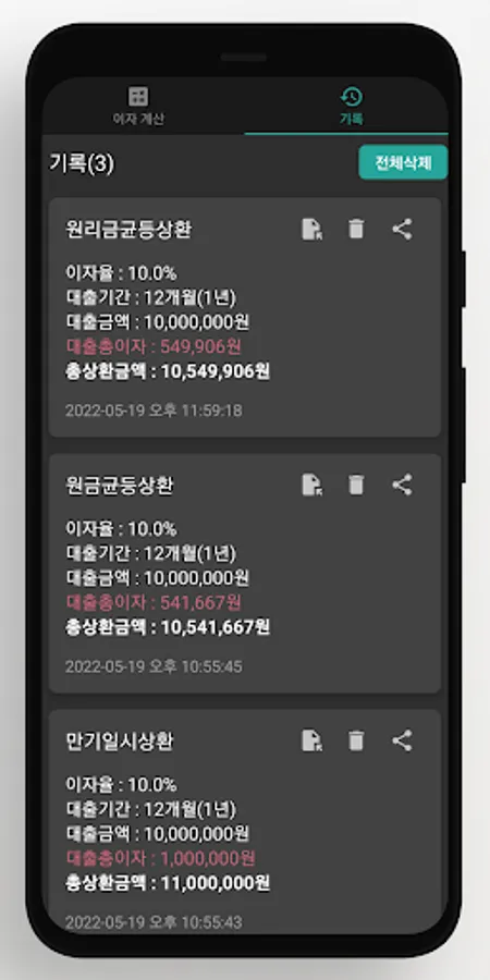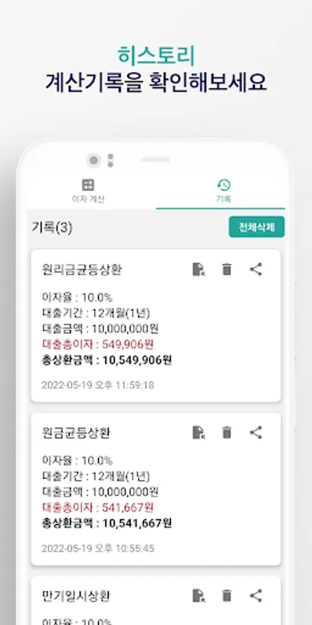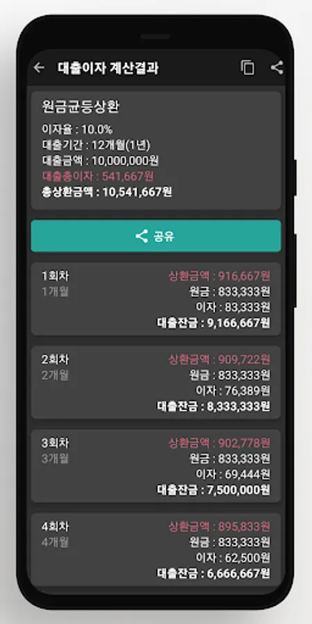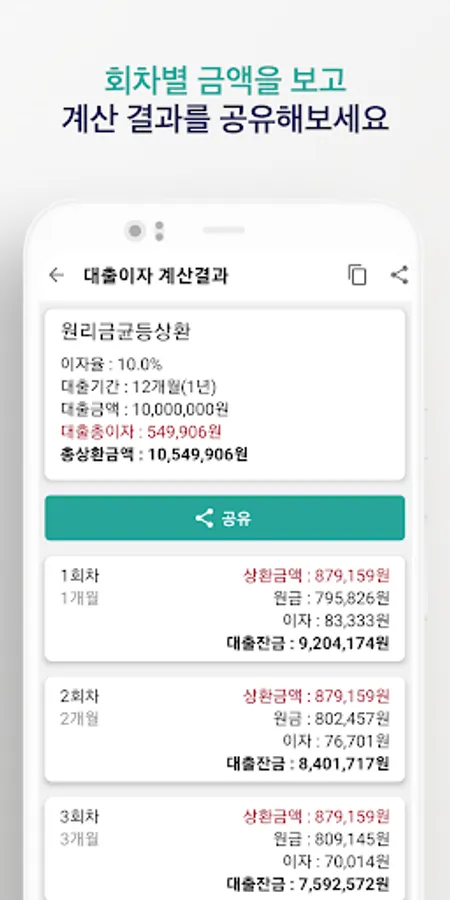 ✓ You can share the loan interest calculation results. (KakaoTalk, Telegram, Mail, SMS, etc...)