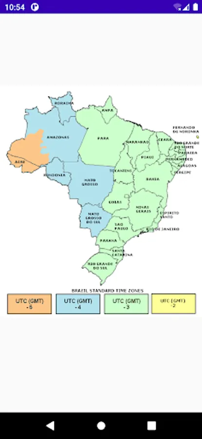 This simple app gives the different timezones details of Brazil : Fernando de Noronha, Sao Paulo, Manaus, Rio Branco.
