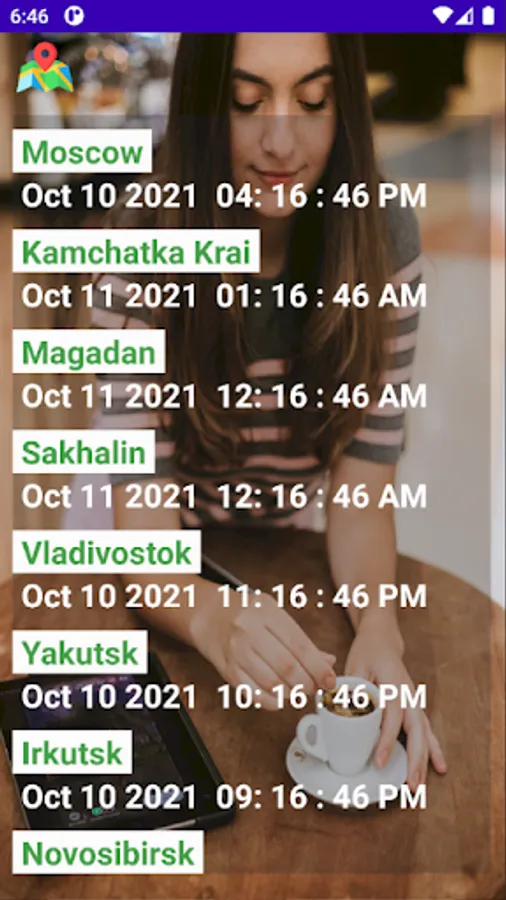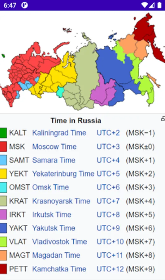 Russian Time Zones Clock app gives the different time zones details of Russia like :