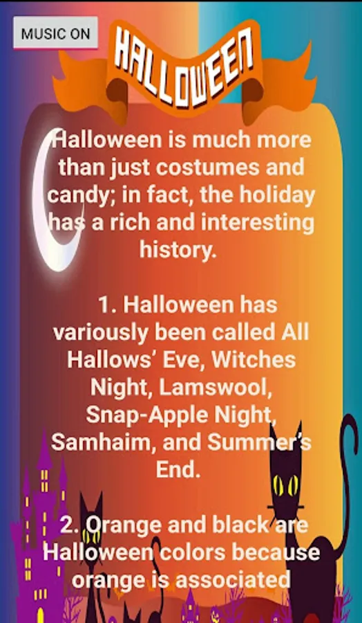 Halloween Countdown App provides the convenient way to accurately monitor next Halloween in days, hours, minutes and seconds. You can also enjoy the soothing music in the background along with few Halloween facts you might not known before !