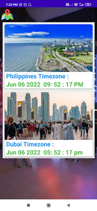 This app gives the time zones of Philippines and (United Arab Emirates ) UAE in beautiful UI.