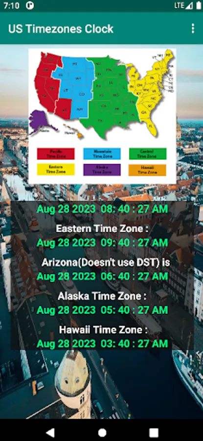 This is very basic US Timezones clock, which shows the current time in Pacific, Mountain, Central and Eastern timezones in the united states. This app also has the timezones of Alaska and Hawaii.