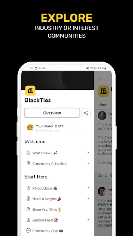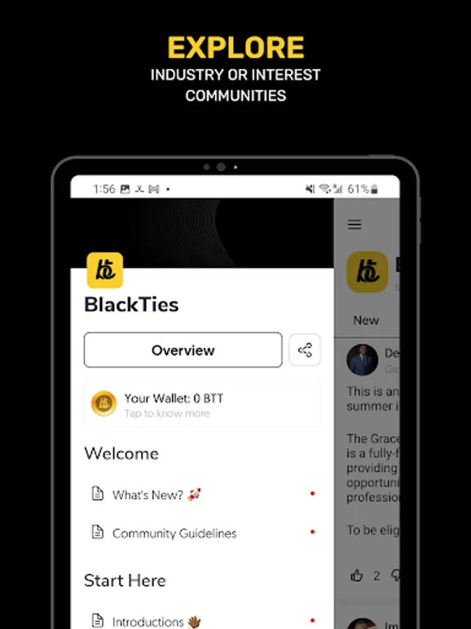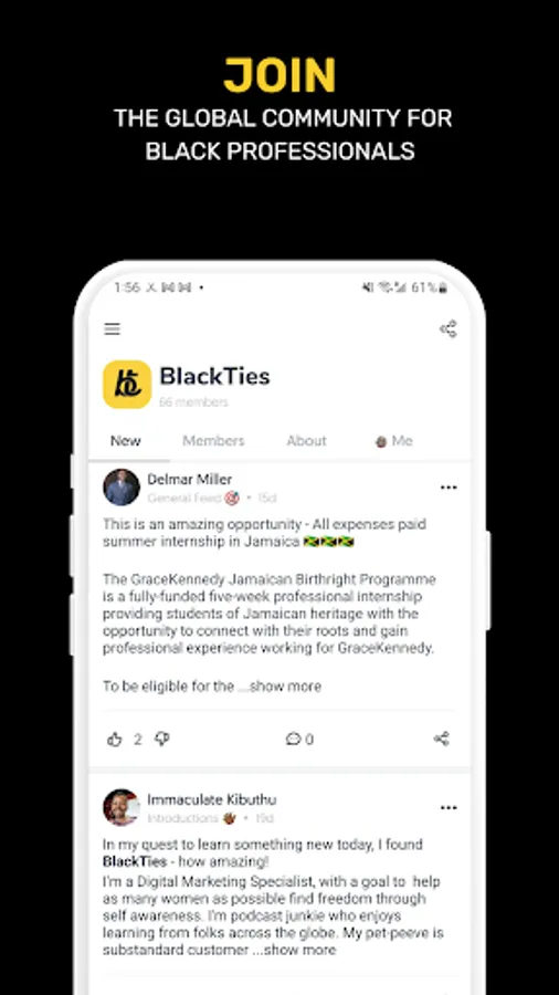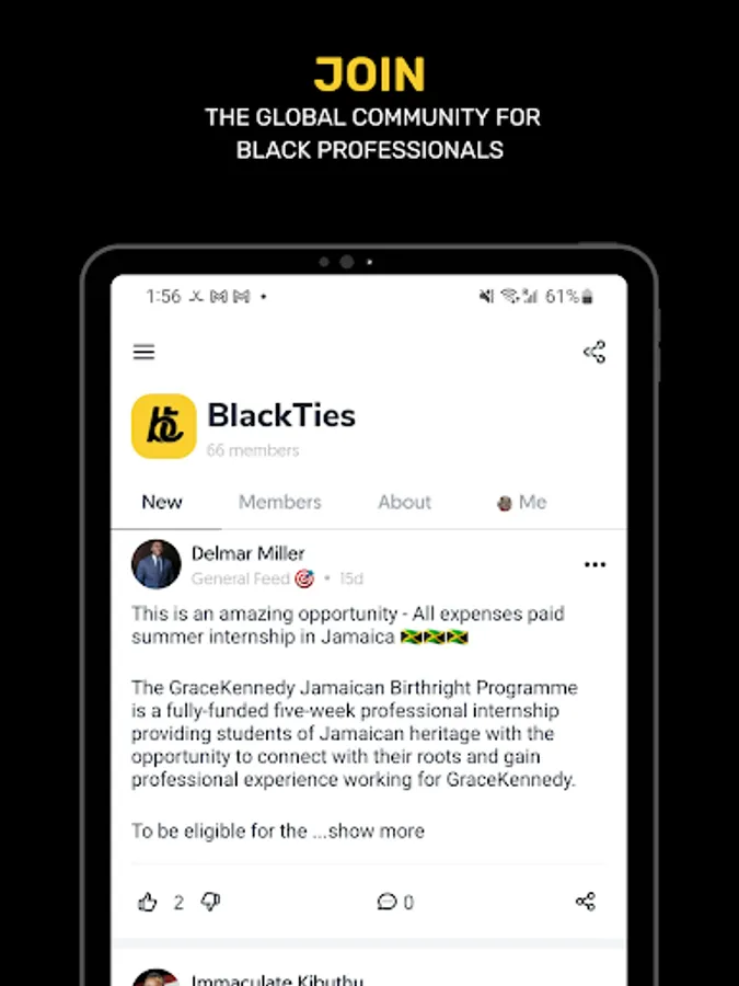 BlackTies is a community platform where Black professionals, students and entrepreneurs from all over the world connect. Our platform provides a safe space for engaging conversations and expressions about careers and life. You can connect to resources you need to succeed and unlock opportunities for career advancement at all stages.