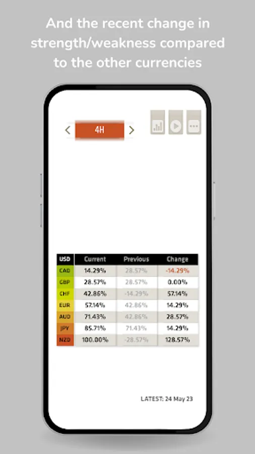 - Two time frames for all major currencies: USD, CHF, EUR, JPY, GBP, AUD, CAD, NZD