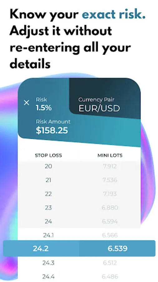 Use the intuitive user interface to calculate the correct position size in mere seconds, and control your risk before entering a trade.