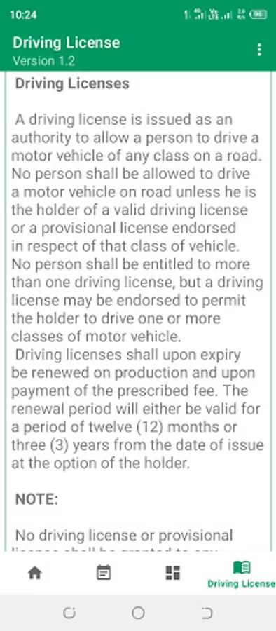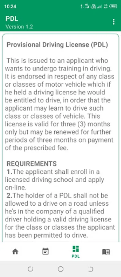 Additionally, the app provides important information about the Provisional Driving License (PDL) and a detailed explanation of the Driving License.